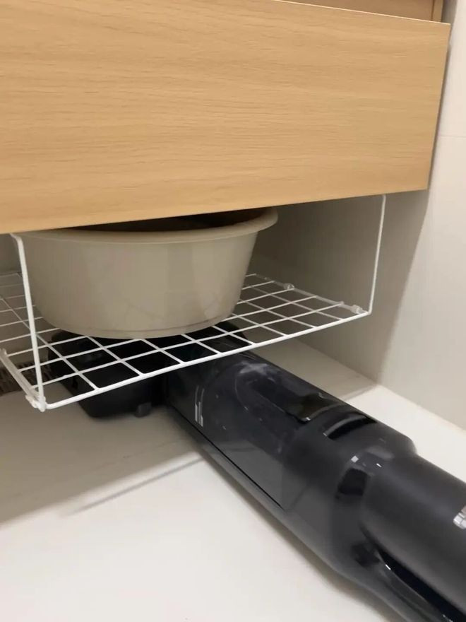 虽然承重力比较一般,但用来收纳家里的塑料盆却非常好用,并且还不影响底部卫生打理。