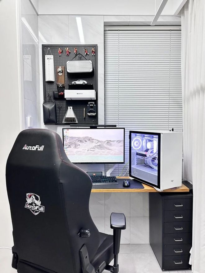 若自己工作学习时有踢墙的习惯,也可以用螺丝将网格片固定在桌面下方,同样干净清爽。
