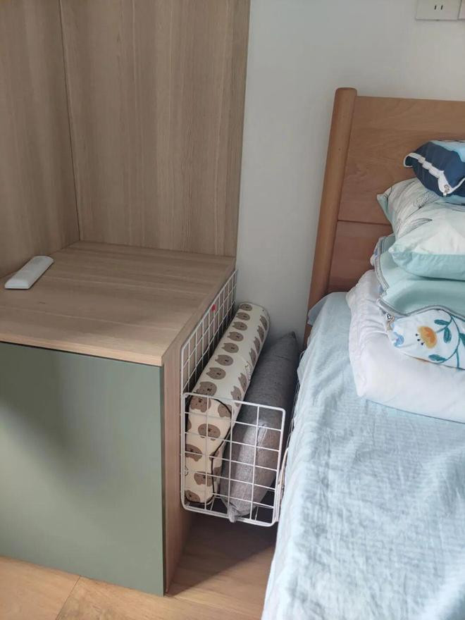 比如在床头与柜子之间有缝隙的情况下,就可以用3片网格片拼装一个,平时放放脏衣服,或者其它物品都很方便。